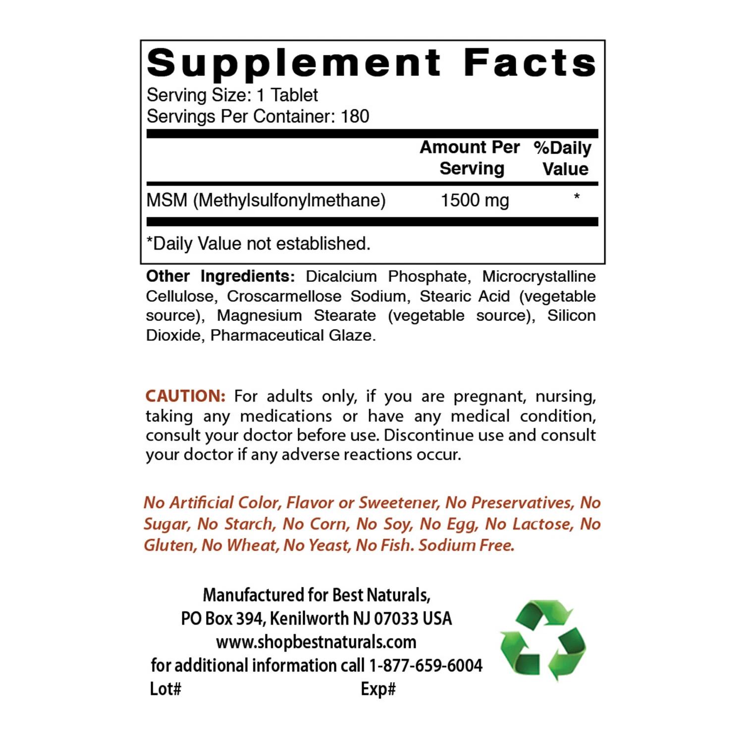 (1 Pack) MSM Tablets 1500mg – Joint Support Supplement – 180 Count