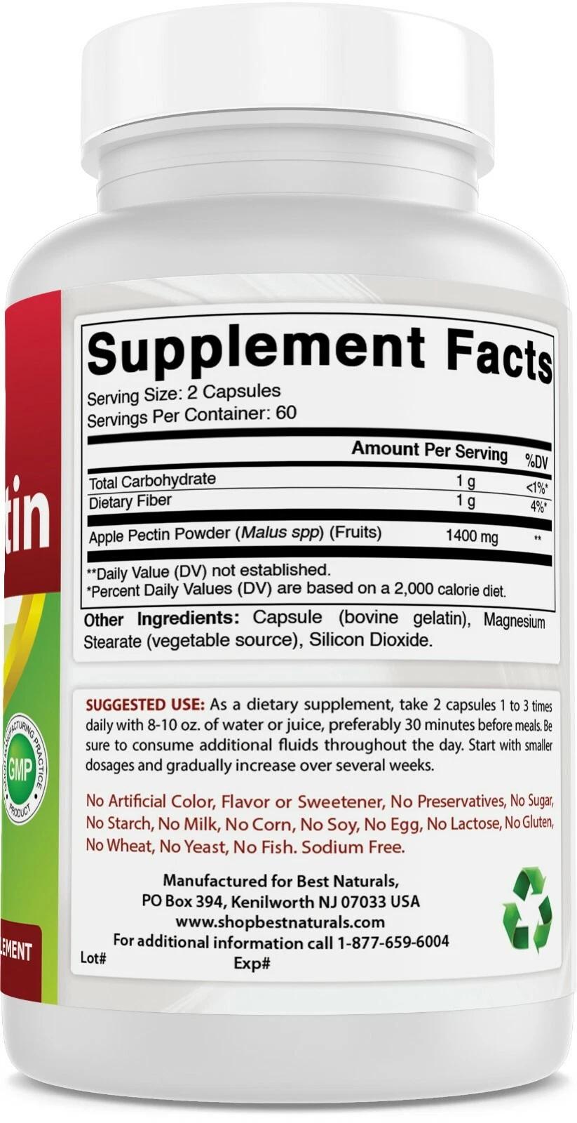 (1 Pack) Apple Pectin 700 mg 120 Capsules – Digestive Health Support