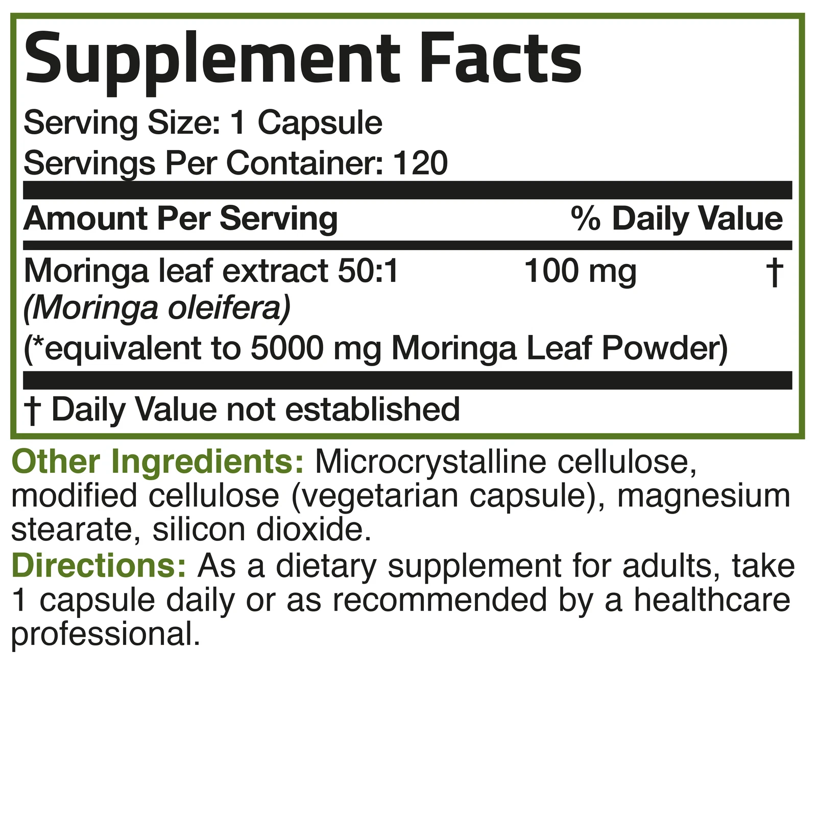 Moringa supplement provides a nutrient-dense way to support overall health and vitality. Known as a powerful antioxidant superfood, moringa contains a rich profile of vitamins, minerals, and plant compounds that help promote energy, strengthen immunity, and combat oxidative stress. With 5000 mg high potency per serving, this supplement delivers a concentrated dose of wellness support in each capsule.