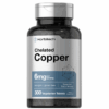 Chelated Copper tablets provide a potent 6mg daily dose to naturally support antioxidant protection, metabolic function, and overall wellness. This Antioxidant & Metabolic Support formula features highly absorbable chelated copper, an essential trace mineral that plays a key role in collagen formation, energy production, and maintaining healthy connective tissues. Each tablet is vegetarian, non-GMO, and produced under strict GMP quality standards to ensure purity, potency, and consistency. Regular supplementation may help promote cardiovascular health, support the immune system, and protect cells from oxidative stress. The convenient tablet format allows for easy daily intake, making it simple to incorporate into a health-focused routine. Ideal for adults seeking natural mineral-based support, Chelated Copper 6mg delivers concentrated nutrients for long-term metabolic and antioxidant health.