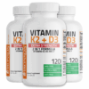 (3 Pack) Vitamin K2 MK7 + D3 120 Capsules – Bone & Heart Health Support